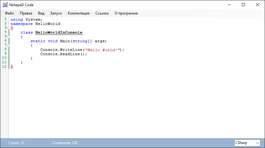 NotepaD Code - редактор кода и текста на котором можно писать код на таких языках как: C#, Visual basic, HTML, SQL, PHP, JavaScript, Lua, JSON, Python, CSS, сам список может обновлятся