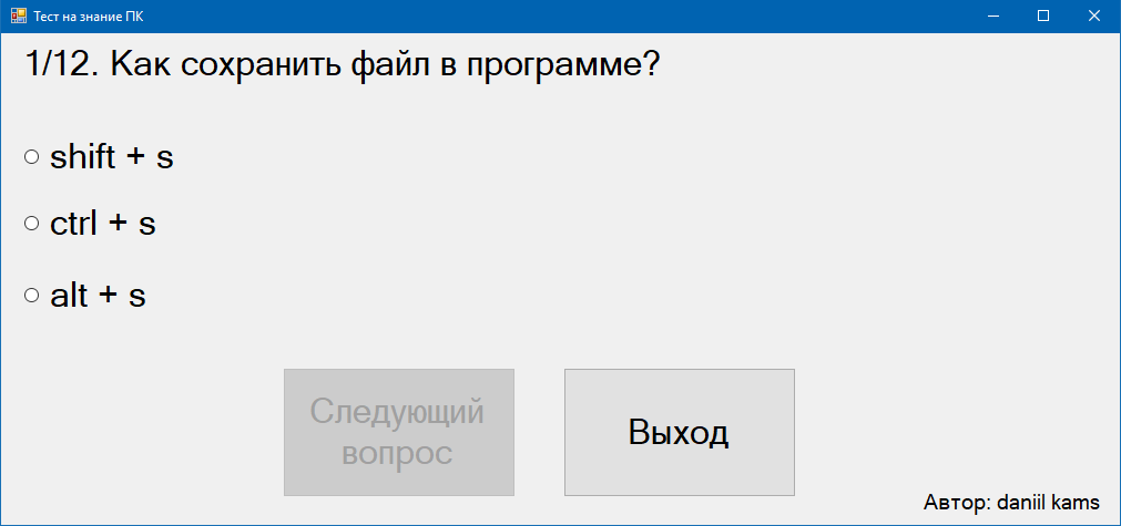 Программа Тест на знание компьютера windows